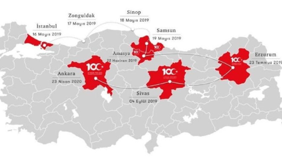 100. yıl kutlamalarına ilişkin etkinlikler yıl boyunca İstanbul, Samsun, Amasya, Erzurum, Sivas ve Ankara güzergahı başta olmak üzere tüm Türkiye'de gerçekleştirilecek.