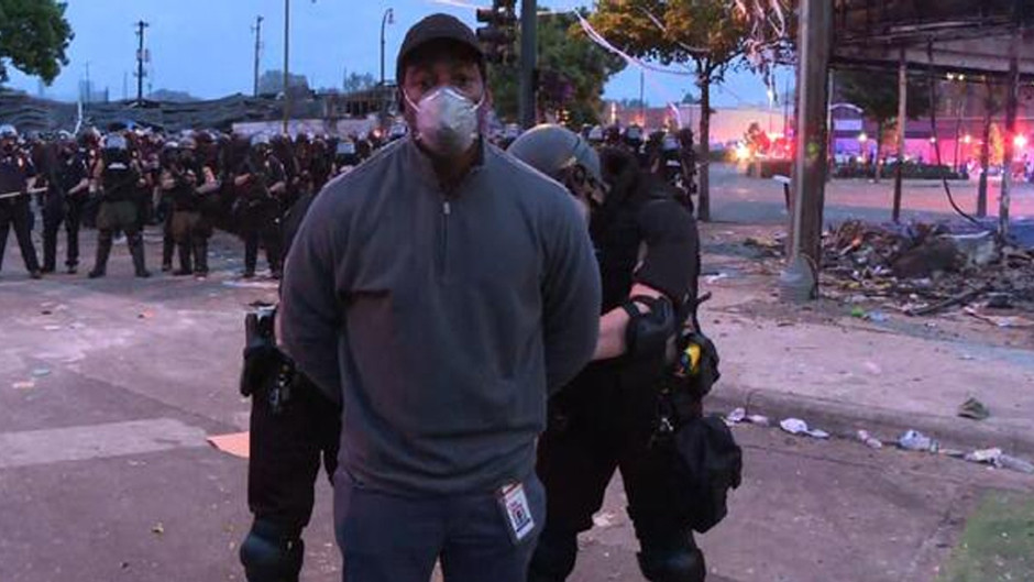 CNN muhabiri Jimenez gözaltı başlamadan önce olay yerinden canlı yayınla bilgiler paylaşıyordu. Polis canlı yayın esnasında tüm CNN ekibine kelepçe takarak gözaltına aldı.