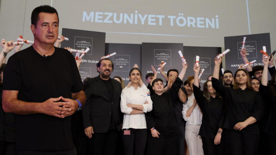 Acun Ilıcalı, Acunmedya Akademi’de “Televizyon”, “Gastronomi” ve “Dijital” bölümlerinden başarılı bir şekilde mezun olan öğrencilerle bir araya geldi. Acunmedya Akademi’den mezun olmanın mutluluğunu yaşayan öğrenciler Acun Ilıcalı ile sohbet etme imkanı buldu.