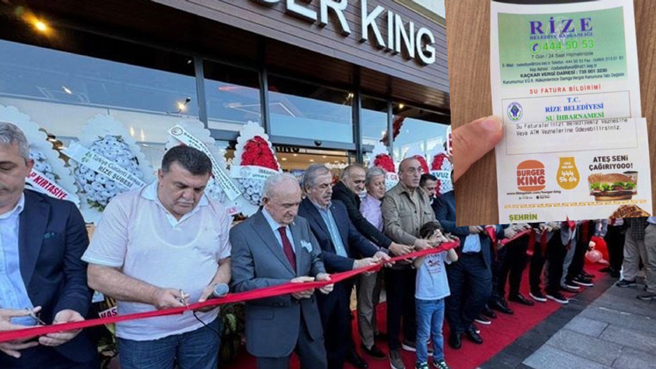 İsrail'e destek verdiği iddia edilerek boykot edilmesi istenen Burger King'in şube açılışına AKP'li belediye başkanının katılmasının tartışmaları sürerken, Rize Belediyesi’nin, su faturalarına aynı şirketin reklamını koyduğu ortaya çıktı.