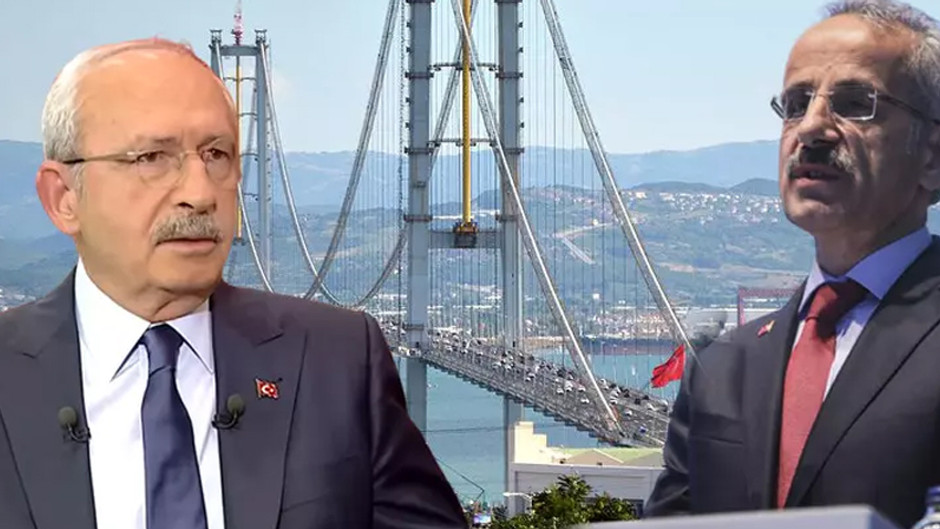 Ulaştırma ve Altyapı Bakanı Abdulkadir Uraloğlu, CHP Genel Başkanı Kemal Kılıçdaroğlu'nun 'Osmangazi Köprüsü'yle ilgili açıklamalarına tepki gösterdi. Uraloğlu, "Türkiye Yüzyılı'na yakışan birbirinden görkemli ulaşım projelerini sürekli çirkin siyaset anlayışına meze yapmaya çalışan yaklaşımları ve yalan siyasetindeki bu ısrarı üzerine, bize de kamuoyunun doğru bilgilendirilmesi sorumluluğumuz çerçevesinde açıklama yapma gereği doğmuştur. Öncelikle belirtmeliyiz ki, ana muhalefet liderinin dile getirdiği rakamların hiçbiri doğru değildir" dedi.