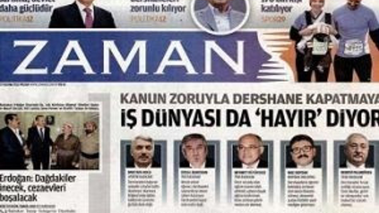 Gazetenin manşetinde ise "Kanun Zoruyla Dershane Kapatmaya İş