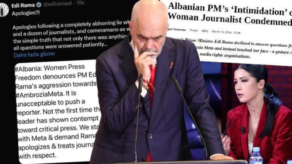 Arnavutluk Başbakanı Edi Rama, kendisine Sazan adasındaki bir yatırım projesi ile ilgili soru soran kadın gazeteciyi kameralar önünde ittikten sonra özür dilemeyi reddetti.