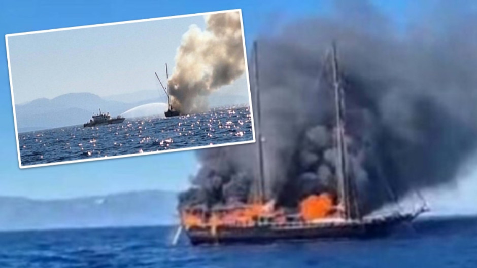 Bodrum'da 27 metre uzunluğundaki teknede yangın çıktı. 8 Polonyalı turist ile 5 personel tahliye edilirken, yanan tekne battı.