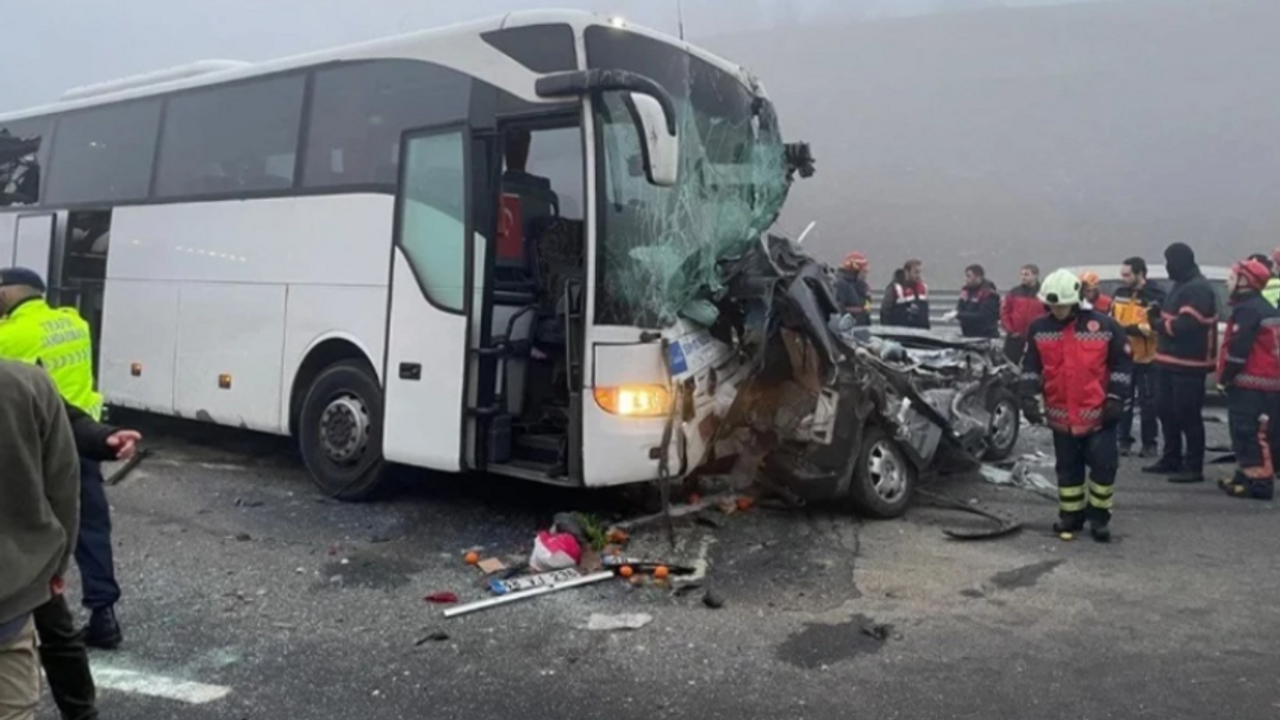 Sis nedeniyle görüş mesafesinin düştüğü yolda, arkadan gelen, aralarında 2 yolcu otobüsü ve 2 TIR'ın da olduğu 5 araç daha kazaya karıştı. Kazada ölenlerin arasında, otobüsten yola inen yolcuların da bulunduğu belirtildi.