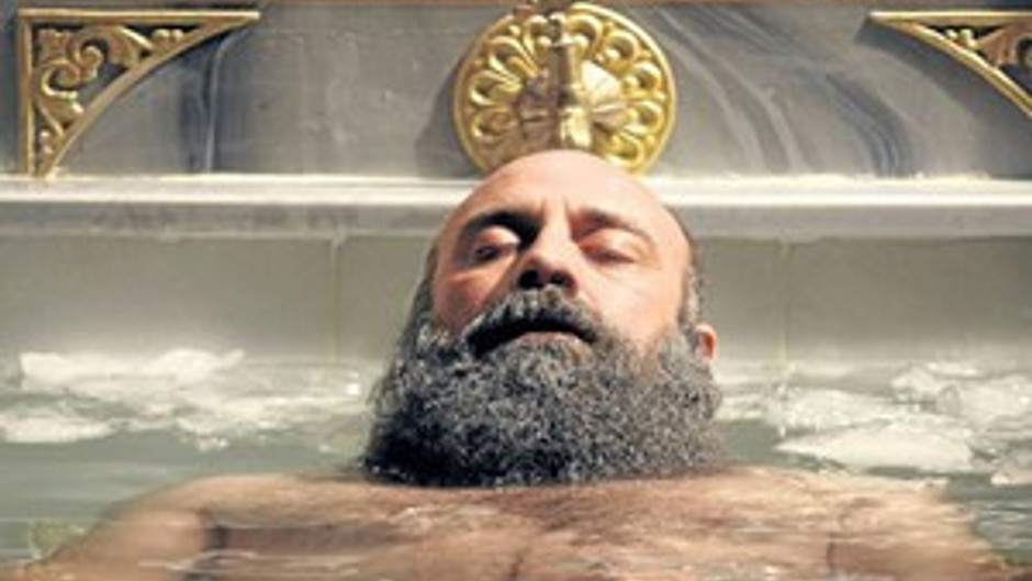 ateşi düşürmek için padişahı buz dolu küvete sokuyor.