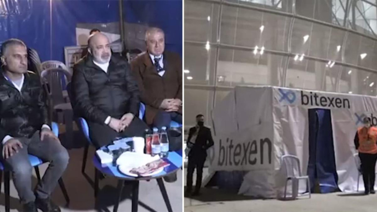 Spor Toto Süper Lig ekiplerinden Adana Demirspor'un Başkanı Murat Sancak, cezalı olduğu için stadyuma giremeyince stat otoparkına kurulan çadır içerisinde maçı izlemeye başladı.