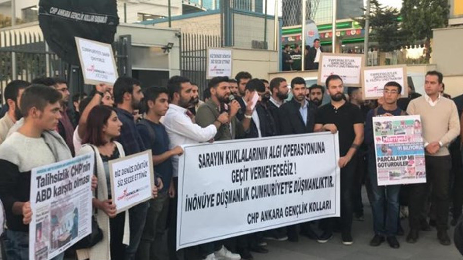 CHP Ankara İl Gençlik Kolları, Hürriyet gazetesinin dünkü manşetini gazete önünde protesto etti.