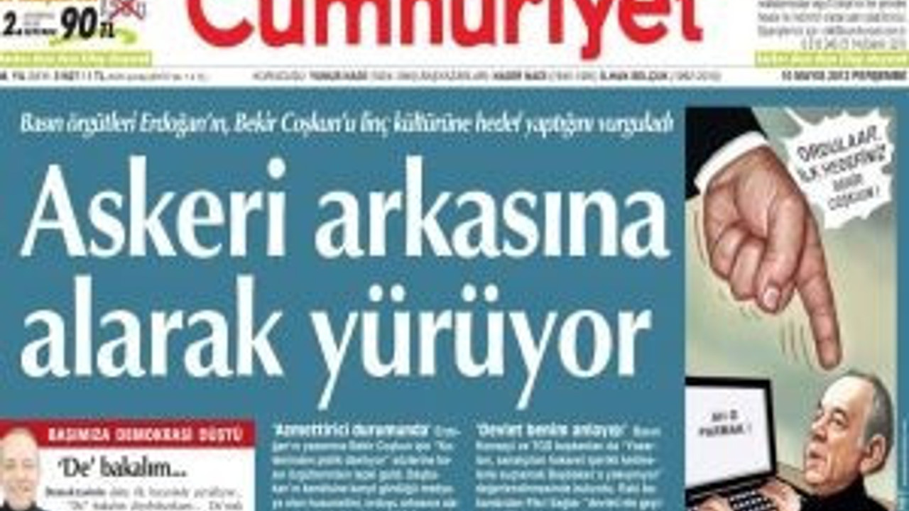 Cumhuriyet gazetesi, köşe yazarları Bekir Coşkun'u sert bir dille eleştiren Başbakan Erdoğan'a bugün 1. sayfasından yanıt verdi...