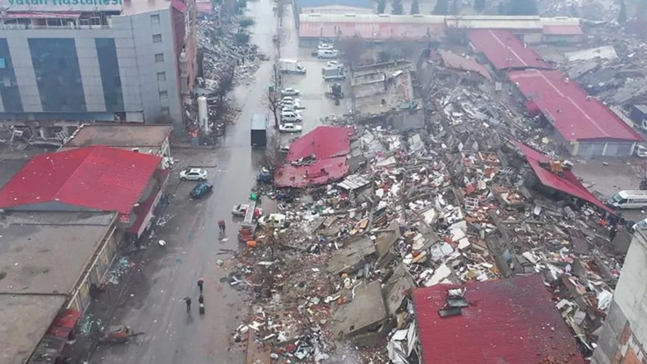 Kahramanmaraş'ta 9 saat arayla meydana gelen 7,7 ve 7,6 büyüklüğündeki deprem sonrası kent merkezi adeta savaş alanına döndü. Cumhurbaşkanı Yardımcısı Fuat Oktay, 310 binanın yıkıldığını açıklarken, enkaza dönen binalar havadan görüntülendi.