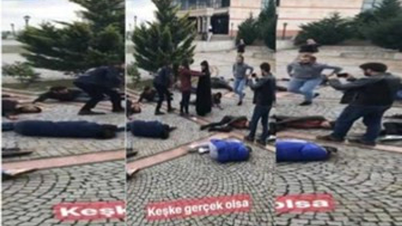 Kocaeli Üniversitesi’nde (KOÜ) 10 Ekim Ankara Katliamı’nı protesto eden Öğrenci Kolektifleri, katliamı tiyatral bir canlandırma ile hatırlattı. Bu sırada haber takibi için orada bulunan Doğan Haber Ajansı (DHA) Kocaeli Muhabiri Faruk Kıyak, öğrencilerin yerde yatarken sergilediği performansın fotoğrafını ınstagram hesabının story bölümünden “Keşke gerçek olsa” notuyla paylaştı.