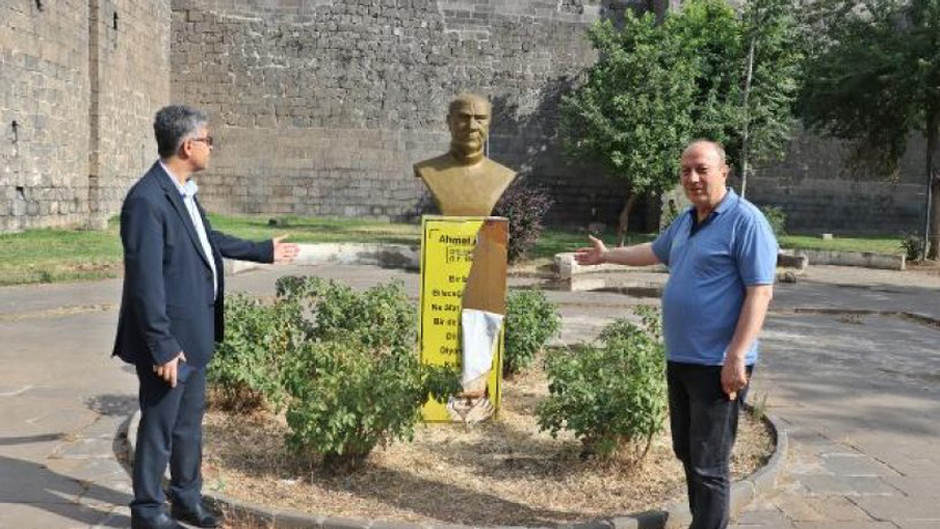 Diyarbakır'ın Sur ilçesindeki parkta yer alan şair ve yazar Ahmed Arif’in büstündeki ünlü şiiri ‘Diyarbekir Kalesi’nden Notlar’ın bir bölümünün yazılı olduğu baskıya kimliği belirsiz kişi veya kişilerce zarar verildi.