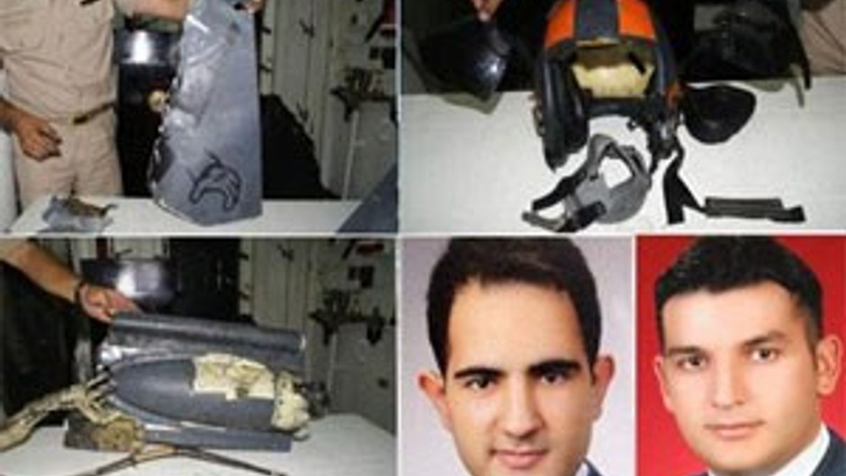 icra etmiş ve uçağa ait bazı parçalara ve pilotlarımızın naaşlarına