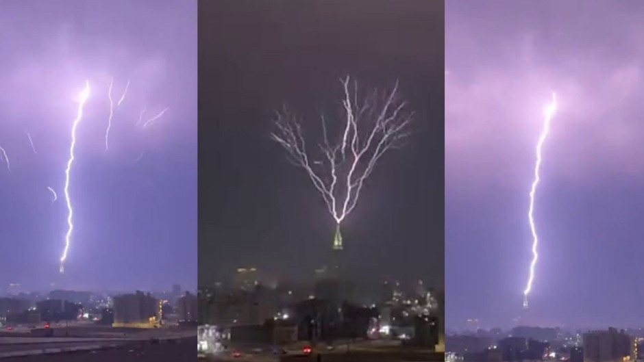 Mekke'de Kabe'nin yanında bulunan saat kulesine çok sayıda yıldırım isabet etti.