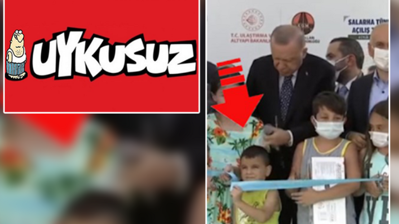 Mizah dergisi Uykusuz, bu haftaki kapağına AKP Genel Başkanı ve Cumhurbaşkanı Recep Tayyip Erdoğan'ın açılışta kurdeleyi erken kesen küçük çocuğa tepkisini ele aldı.