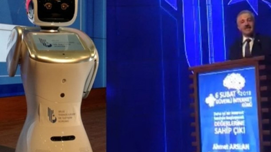 Hürriyet yazarı Ertuğrul Özkök, Güvenli İnternet Günü programını sunan robotun Ulaştırma Bakanı Ahmet Arslan'ın sık sık sözünü kesmesi sonrası Arslan'ın şikâyetini ve sonrasında yaşananları değerlendirdi.Arslan'ın, “Yavaş konuş ne dediğini anlamıyorum...” sözlerinin ardından robotun, “Sen ne diyorsun ya...” dediğini aktaran Özkök, "Bir kere bu bir robot zıpırlığı falan değil, apaçık bir eylem..." dedi.