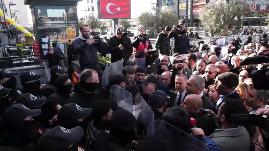 Söz konusu abluka için yazılı emir görmek isteyen CHP'liler ile polis arasında gerginlik yaşanıyor. Belediye binası önündeki kalabalık "Halkın polisi olun”, “Direne direne kazanacağız” sloganları atıyor.