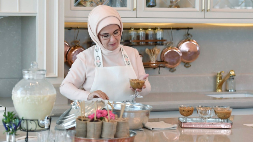 First Lady Erdoğan mutfağa girip aşure yaptı!