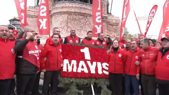 1 MAYIS KUTLANIYOR! TAKSİM'DE DEV PANKART!