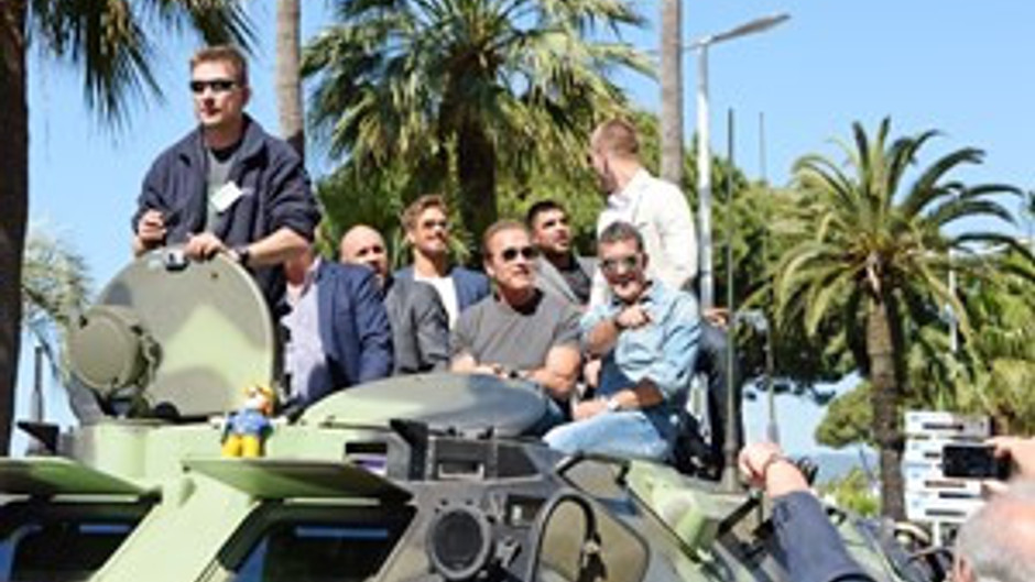 Expendables 3 filminin dev kadrosu, Cannes'da gerçekleşen basın konferansına tank üzerinde gelip, hayranlarını selamladılar.