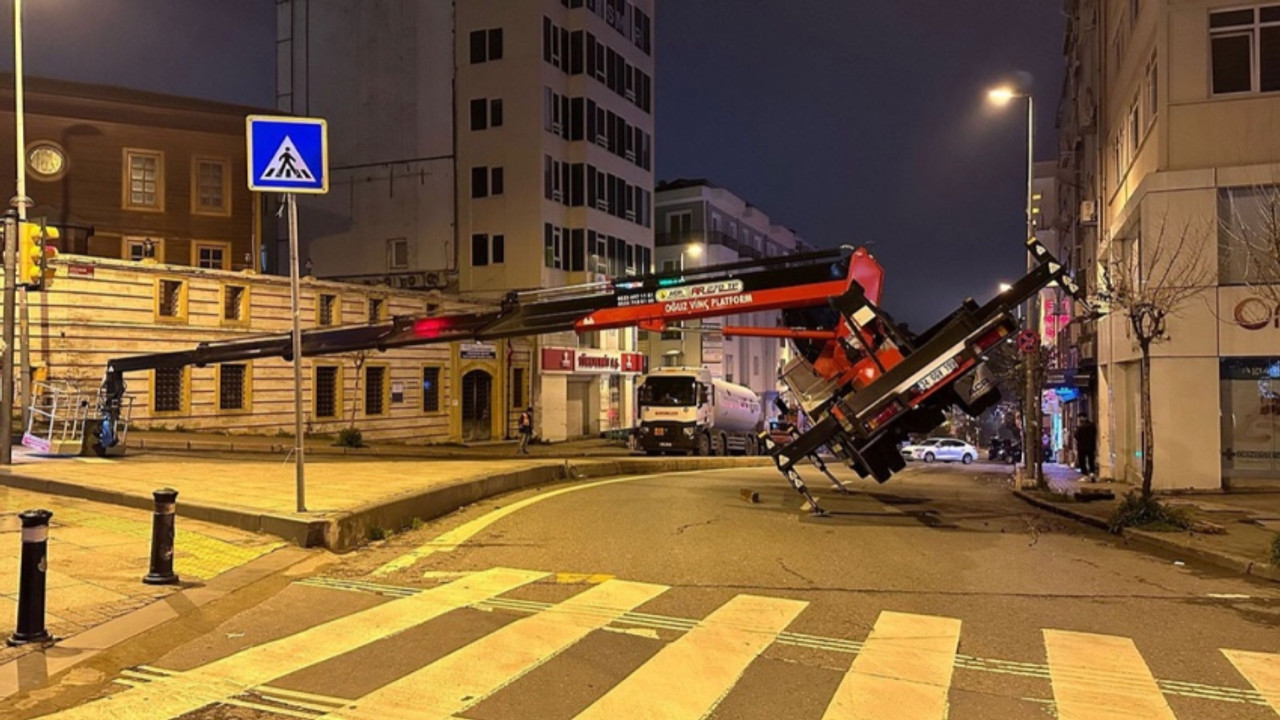 Molla Gürani Mahallesi Oğuzhan Caddesi'nde 34 GGV 199 plakalı sepetli vinç çalışma yaparken devrildi. Kaza sonucu 2 kişi hafif yaralandı.