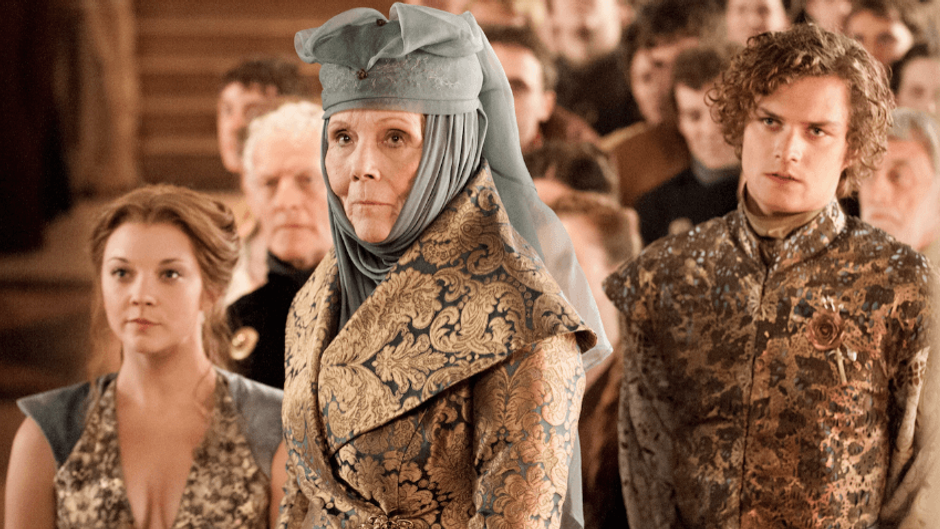 Birçok yapımda rol alan Diana Rigg, The Avengers dizisinde Emma Peel rolünde oynarken, Game of Thrones'ta ise Olenna Tyrell olarak izleyicilerin karşısına çıktı.