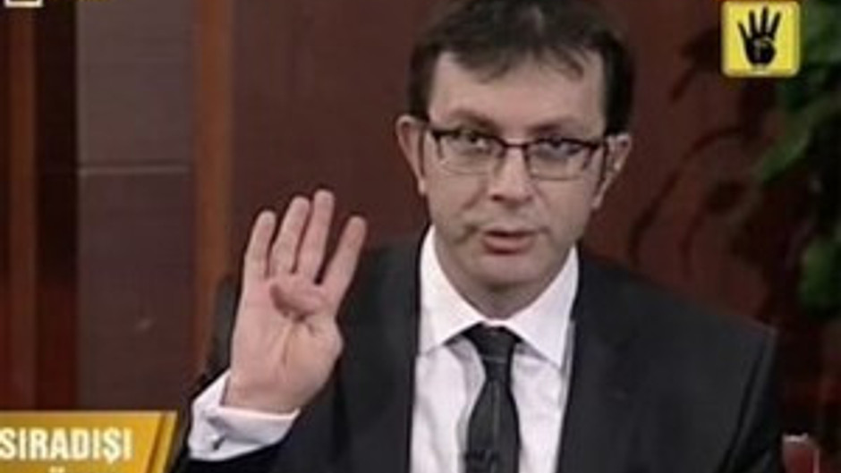 Başbakan Erdoğan ve gazeteciler, Ülke TV'deki "Sıradışı" programını Rabia selamıyla kapattılar.
