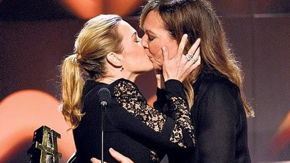 Kate Winslet, ödül aldığı Hollywood Film Ödülleri gecesinde oyuncu Allison Janney’in dudaklarına yapışarak geceye damgasını vurdu