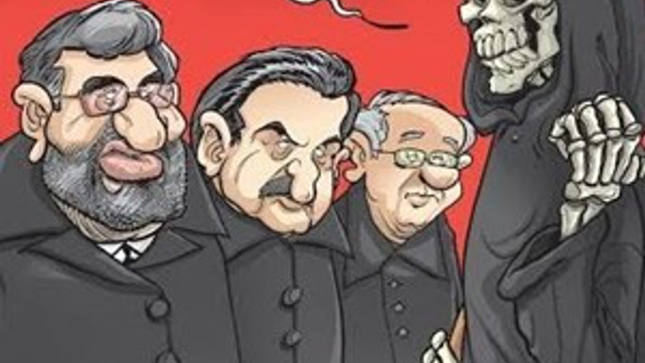 Derginin kapağında Azrail 3 bakana seslenerek "Hazır siz burdayken