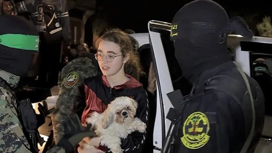 Hamas, Gazze Şeridi'ndeki İsrailli esir kızı, kucağında köpeğiyle serbest bıraktı.