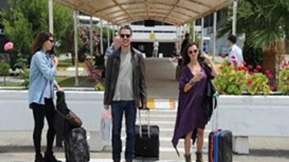 Hande Soral ile senarist Bahadır Özdener, Dalaman Havalimanı çıkışı objektife yakalandı.