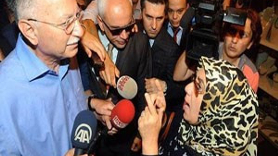 Cumhurbaşkanı Adayı Ekmeleddin İhsanoğlu'na Mısır Çarşısı ziyareti sırasında bir kadın 'yakamızdan düşün' diyerek tepki gösterdi. İhsanoğlu'na eşlik eden MHP'lilerin de gazetecilerle tartıştığı gezi olaylı geçti.