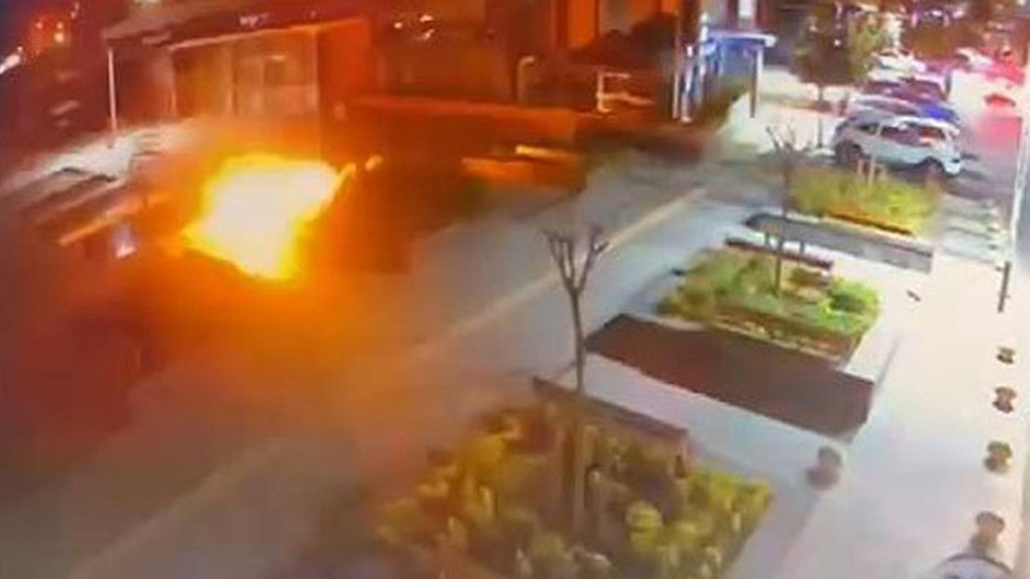 Görüntülerde olay yerine gelen şüphelilerden birinin bombayı attıktan sonra kaçması ve patlama yer alıyor.