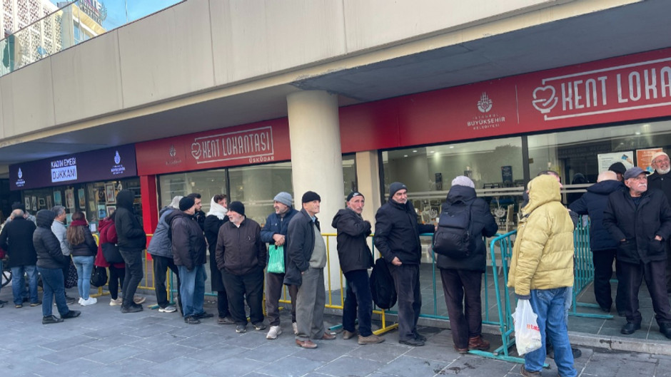 Sandalye sayısı kadar iftar yemeğini ücretsiz verileceği kent lokantaları önünde yine uzun kuyruklar oluştu. Üsküdar Kent Lokantası'nda yurttaşlar ücretsiz 4 çeşit yemek için sıraya girerek iftar saatini bekledi.