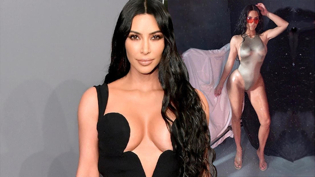 Derin a kesimli metal rengi mayosuyla seksi poz veren Kim Kardashian yine bütün dikkatleri çekmeyi başardı.