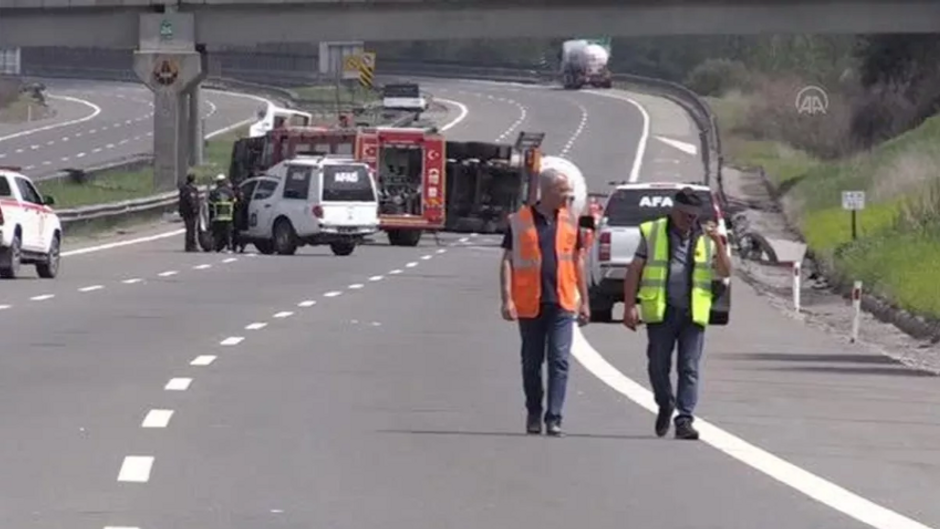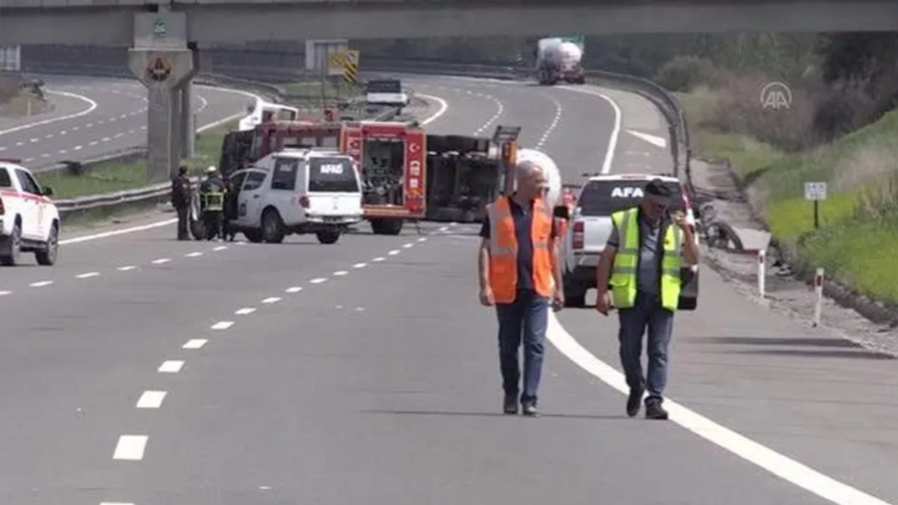 Anadolu Otoyolu'nun Ankara yönünde ilerleyen LPG yüklü 34 DEV 265 plakalı tanker, Ulusu mevkisinde kontrolden çıkarak devrildi. Durumun bildirilmesi üzerine bölgeye itfaiye, sağlık, jandarma ve AFAD ekipleri sevk edildi.