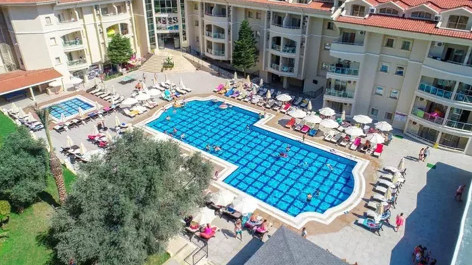 2 blok halinde, 4 bin 800 metrekare kapalı alan bulunan, 2 ayrı girişi olan 155 odalı otelde, yüzme havuzu, kapalı ve açık alan yemekhaneleri bulunuyor. Kamera ve yangın alarm sistemi, yangın merdiveni, otoparkı ve fitness salonu bulunan otelin hemen çıkışında otobüs ve minibüs durakları bulunuyor. Otel, Muğla Sıtkı Koçman Üniversitesi Marmaris Turizm Meslek Yüksekokulu'na yaklaşık 1 kilometre, Sağlık Hizmetleri Meslek Yüksekokulu'na ise yaklaşık 9 kilometre mesafede bulunuyor.