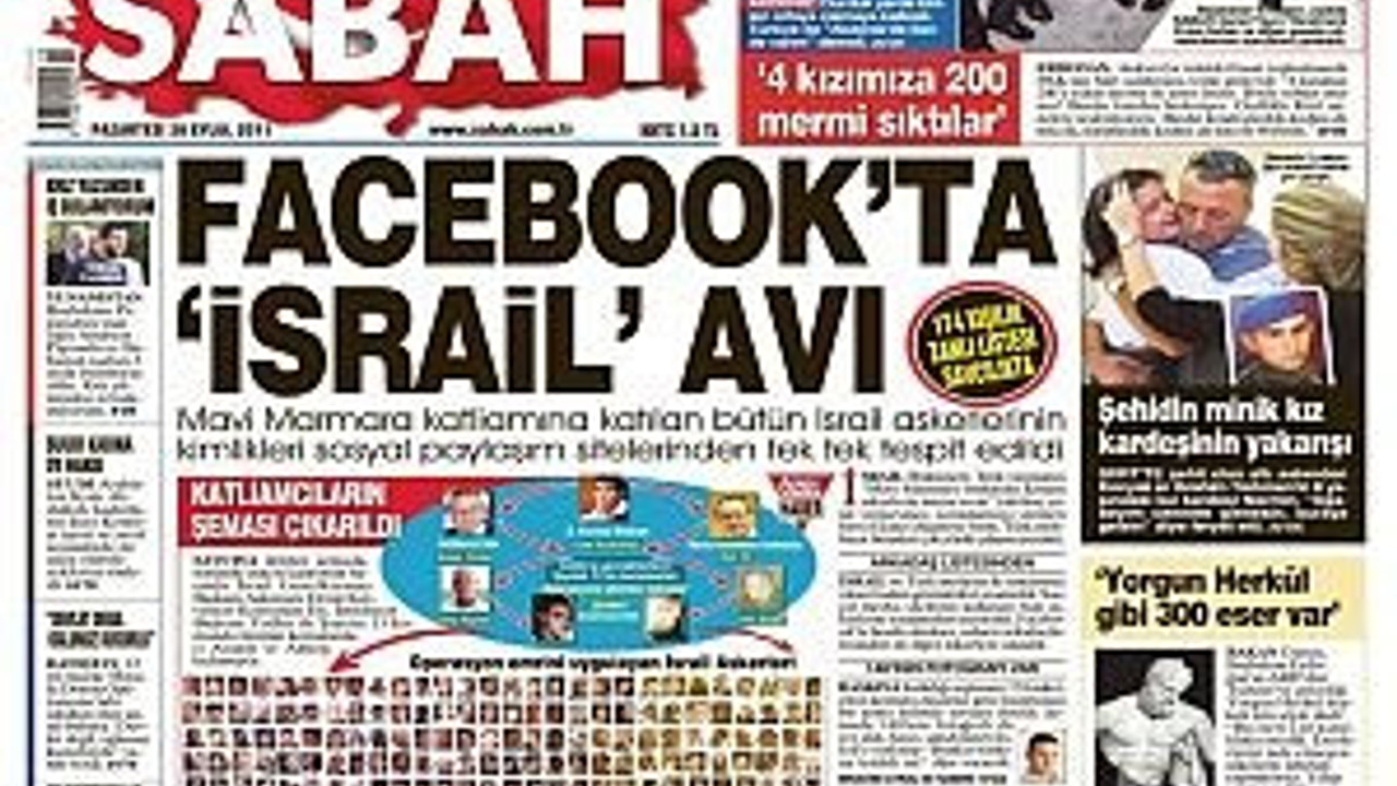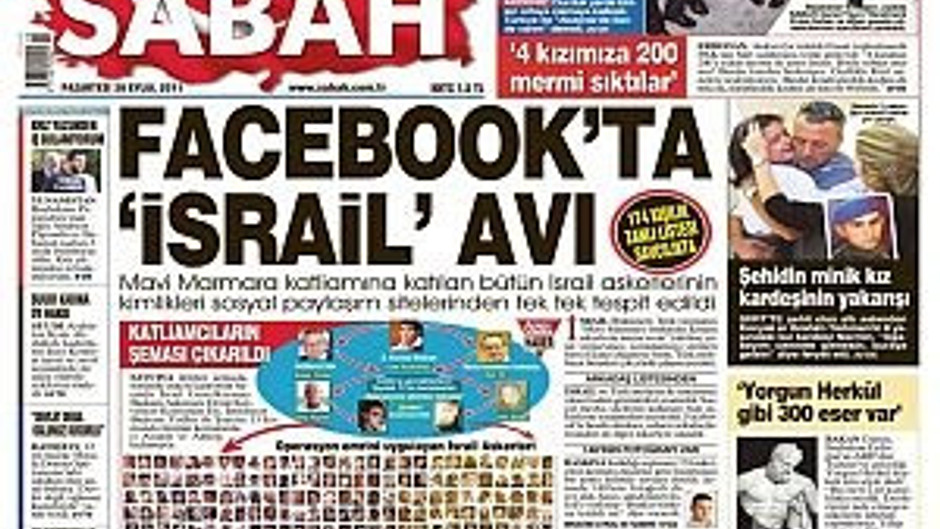 SABAH’ın dün manşetten duyurduğu, Mavi Marmara baskınına katılan İsrailli askerlerin kimlik bilgilerinin facebook üzerinden tespit edildiği haberi, İsrail basınına bomba gibi düştü. Başta The Jerusalem Post ve Maariv olmak üzere ülkenin en etkili gazeteleri, internet sitelerinde habere geniş yer verdiler. The Jerusalem Post, "Kimlik bilgilerini Türk İstihbaratı (MİT) değil, İnsani Yardım Vakfı (İHH) topladı" başlıklı haberinde, habere konu olan süreçle ilgili ayrıntılara değindi. Gazete ayrıca, Mavi Marmara gemisinde bulunmuş olan aktivistlerden Ramazan Arıtürk’ün şu sözlerine de yer verdi: "Mavi Marmara’ya düzenlenmiş saldırıya katılan ve emir veren İsrailli yetkililerin isimlerinin listesini İstanbul Cumhuriyet Başsavcılığı’na teslim ettik. Şu anda savcılığın soruşturmasının sonucunu bekliyoruz." Yediot Ahronot, konuyla ilgili haberini internet sitesinin manşetinden duyururken, Türkiye’nin İsrailli askerlerin kimlik bilgilerini teyit edebilmek için İsrail’e ajan gönderdiğinide iddia etti. Yediot Ahronot, haberinde SABAH’ın vermiş olduğu 174 kişilik sorumlular listesinde Mavi Marmara baskınına katılmış askerlerin yanı sıra, baskınla doğrudan ilgisi olmayan bazı isimlerin de yer aldığını okurlarına duyurdu. Maariv gazetesi ise, İbranice olarak yayınlanan "Türkiye savunmada: "Kimlik bilgilerini biz toplamadık!" başlıklı haberinde, İsrail asker ve komutanların kimlik bilgilerinin İHH tarafından toplandığı bilgisini yineledi. Israel HaYom gazetesi İbranice internet baskısında habere yer vermezken, İngilizce nüshasında haberi yorumsuz olarak duyurdu. Haberi SABAH’ta yayımlandığı şekliyle veren Israel HaYom, "Türk İstihbaratı ve Adalet Bakanlığı, Mavi Marmara baskınına katılan 174 askerin kimliklerini tespit etti" başlığını öne çıkardı.