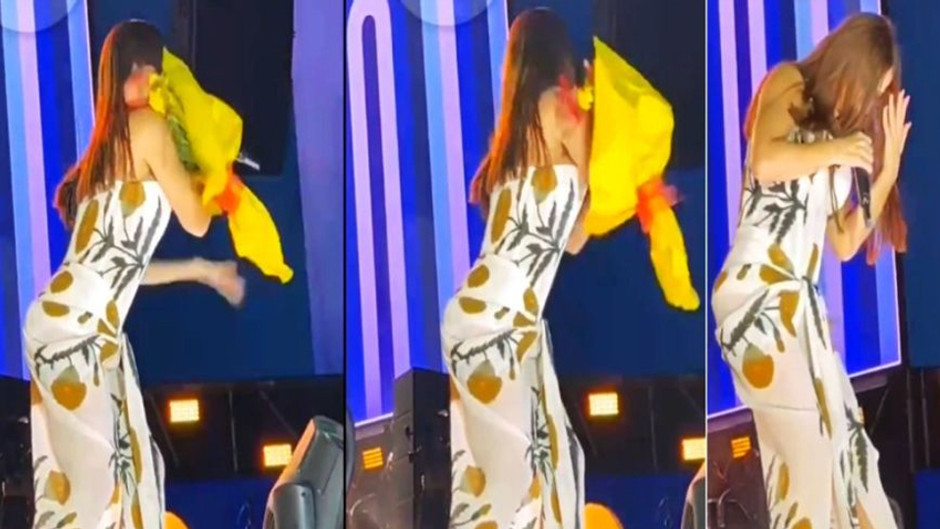 Şarkıcı Simge'ye sahnede saldırı! Yüzüne önce çiçek sonra telefon fırlattılar