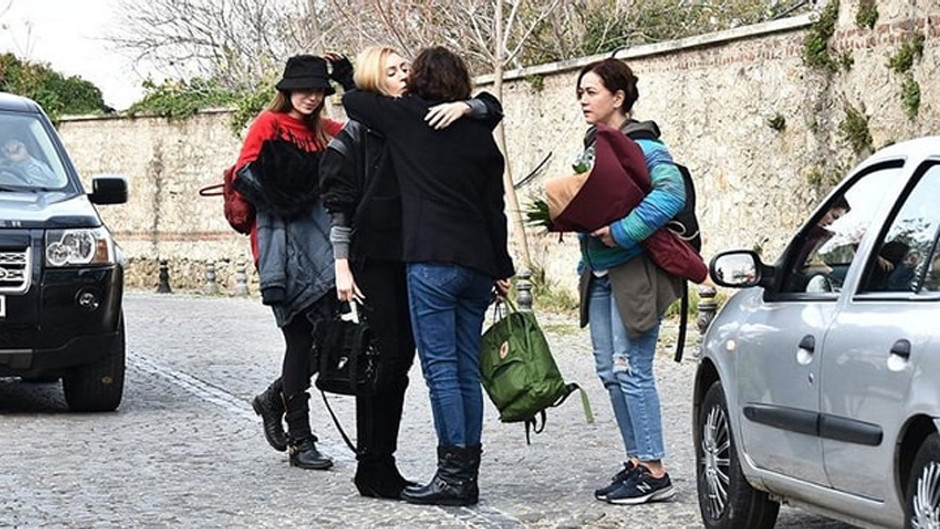 Birbirleriyle vedalaştıktan sonra hızla araçlarına giden ünlü oyunculardan Bennu Yıldırımlar’ın elindeki çiçek dikkat çekti.