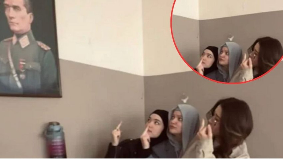 Seferihisar Uluslararası İmam Hatip Lisesi’nde yabancı uyruklu üç kız öğrencinin, sınıfta Atatürk portresi önünde uygunsuz el hareketleriyle poz verdiği görüntüler tepki topladı. Sosyal medyada hızla yayılan fotoğraf üzerine yetkililer harekete geçti, olayla ilgili soruşturma başlatıldı.