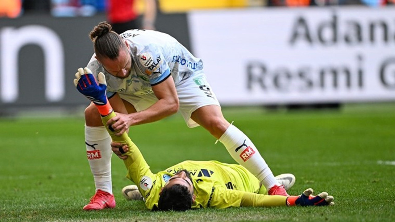 Rumen forvetin dizi, Adana Demirspor kalecisinin kafasına gelirken Vedat yerde kaldı ve kalkamadı.