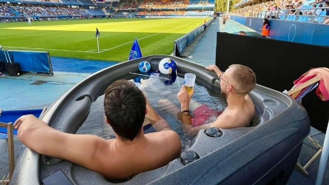 Troyes-Rennes maçında iki taraftar maçı saha kenarına kurulan jakuzide izledi