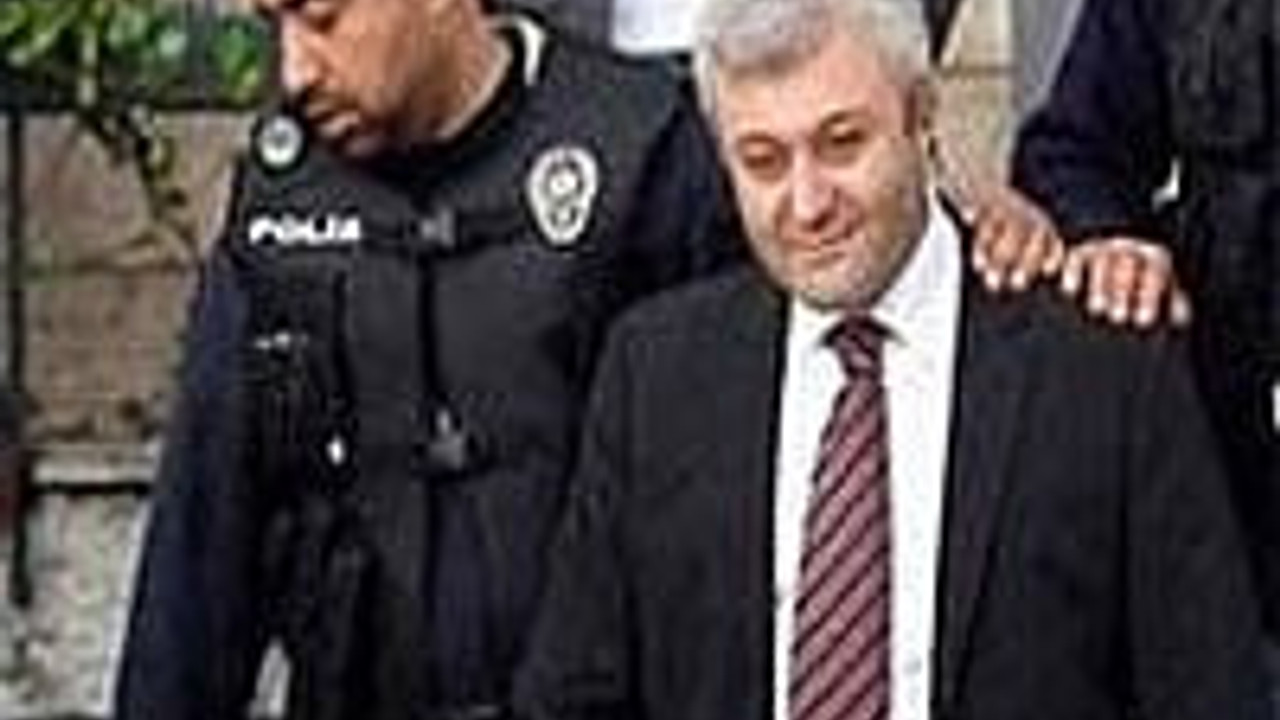 Ergenekon tutuklusu Tuncay Özkan bileğindeki kelepçeyi basın mensuplarından saklamaya çalıştı.