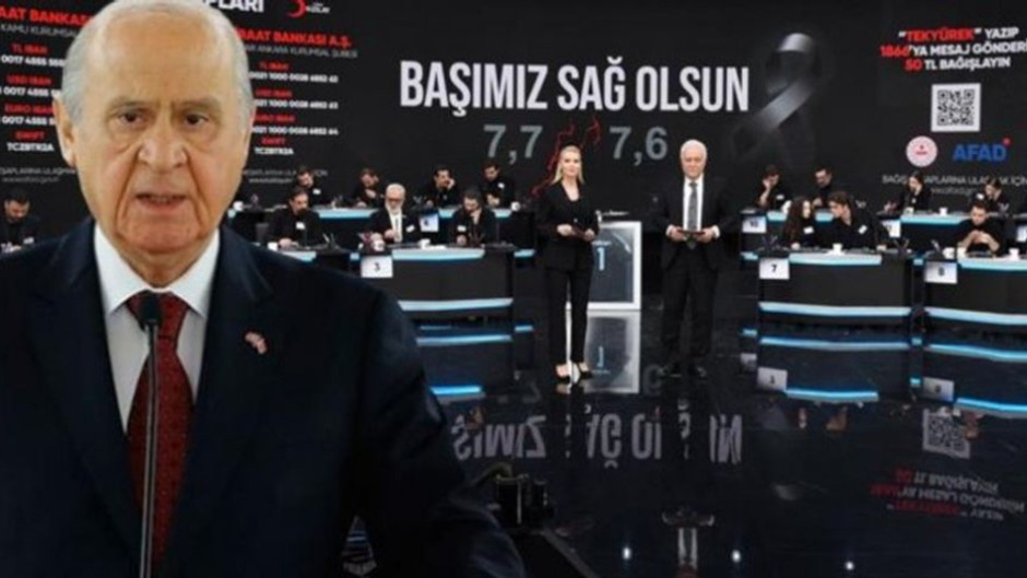 Kahramanmaraş merkezli depremlerin ardından dün akşam 213 televizyonun katılımıyla "Türkiye Tek Yürek" kampanyası gerçekleşti. Yayına bağlanmayı tercih etmeyen MHP lideri Bahçeli, kampanyaya desteğini sosyal medyadan açıkladı.