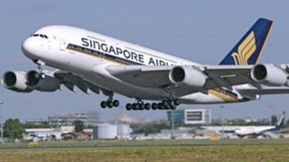 Singapur Havayolları'na ait bir uçakla Singapur'a doğru hareket