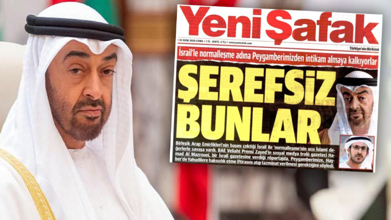 Türkiye ile Birleşik Arap Emirlikleri (BAE) arasında gerginliği azaltmaya yönelik adımlar devam ederken, bir yıl önce "İsrail’le normalleşme adına Peygamberimizden intikam almaya kalkıyorlar: Şerefsiz bunlar!" manşetini atan Yeni Şafak gazetesi, BAE Veliaht Prensi Muhammed bin Zayed el Nahyan'ın yarın Türkiye'ye gelerek Cumhurbaşkanı Tayyip Erdoğan'la görüşecek olmasını "Körfez’le yeni dönem: Birleşik Arap Emirlikleri Veliahtı El Nahyan yarın Türkiye’ye gelecek" sözleriyle haberleştirdi.