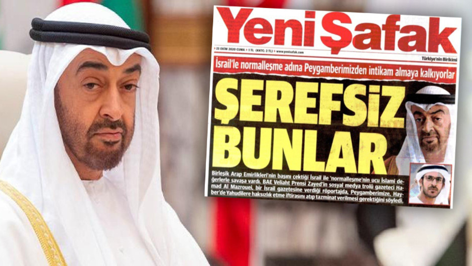 İki ülke arasındaki ilişkilerin durma noktasına geldiği dönemde ise Yeni Şafak gazetesi, 23 Ekim 2020 tarihinde, Yeni Şafak gazetesi, İsrail ile Birleşik Arap Emirlikleri arasındaki normalleşme sürecine ilişkin olarak "İsrail’le normalleşme adına Peygamberimizden intikam almaya kalkıyorlar: Şerefsiz bunlar!" manşetini atmıştı.